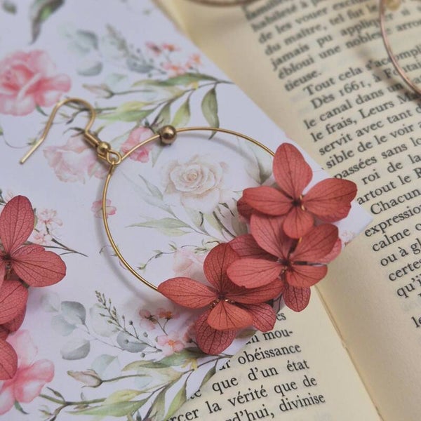 Laissez-vous séduire par la délicatesse de ces boucles d’oreilles bohèmes et romantiques, confectionnées à la main avec amour. Chaque paire est ornée de véritables fleurs d’hortensia stabilisées, dans une teinte vieux rose douce et raffinée, qui évoque la poésie des jardins d’antan.